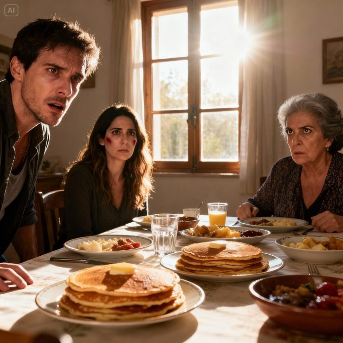 A la mañana siguiente, Javier despertó con un olor dulce que no esperaba. Panqueques. Café recién hecho. Tocino. Abrió los ojos con una sonrisa satisfecha, convencido de que el silencio de la noche anterior había sido rendición. Se levantó, caminó hacia la cocina y vio la mesa llena de comida deliciosa, servida con un cuidado que hacía meses no veía.