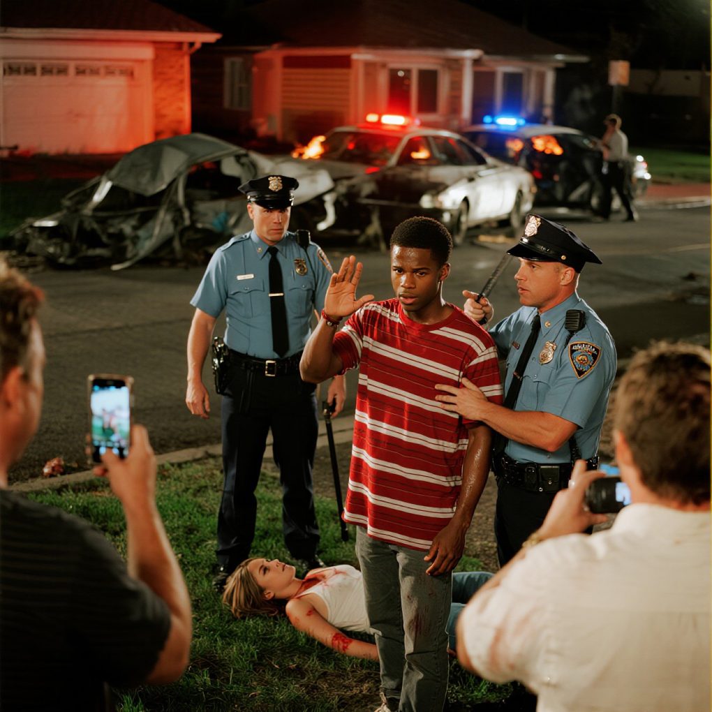 But when the first police cruisers arrived, everything shifted. Two white officers jumped out, weapons drawn.