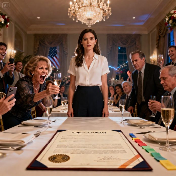 I reached into my bag and pulled out a folder—clean, formal, stamped. The sound of it landing on the table was quiet, but sharp enough to cut through the room’s laughter.