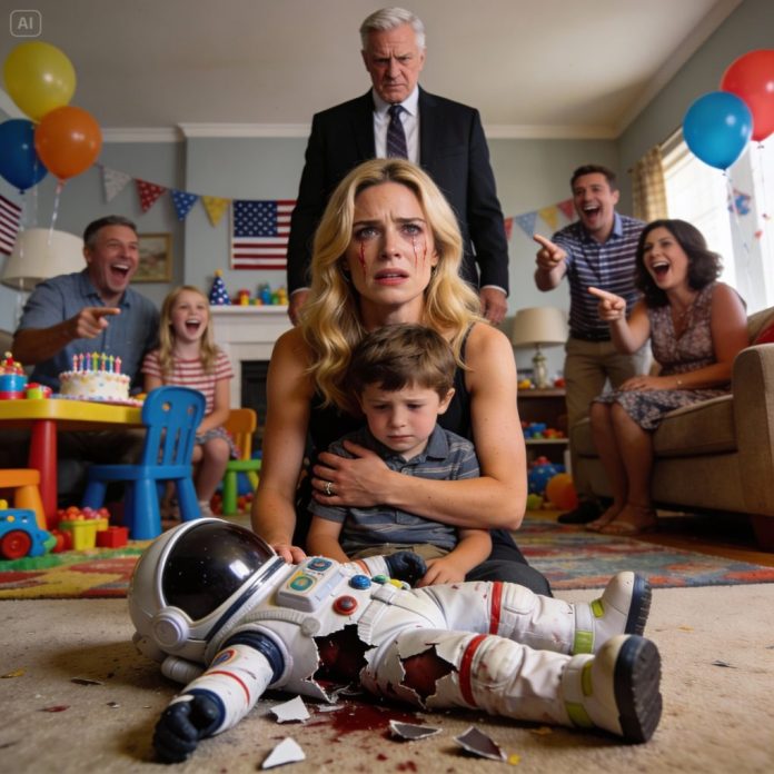 The moment my sister Claire smashed the gift, the room went quiet in a way that felt unnatural, like the air itself had been punched from our lungs. It was Noah’s eighth birthday. The toy—an astronaut set he had begged for months—lay in broken plastic pieces at her feet. Claire didn’t even look sorry. She sneered, lips curling as if she’d done us a favor.
