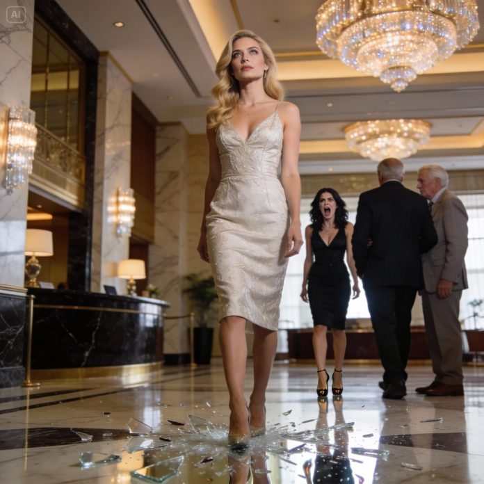 The glass slipped from my fingers before I realized my hand was shaking. It hit the marble floor with a sharp, final sound and shattered into bright, useless pieces. The receptionist’s voice stayed calm, almost apologetic.