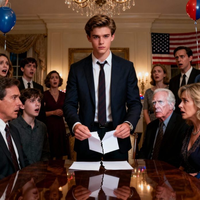 Gasps replaced laughter. My father’s smile faded instantly. He leaned forward, reaching for the torn pieces.