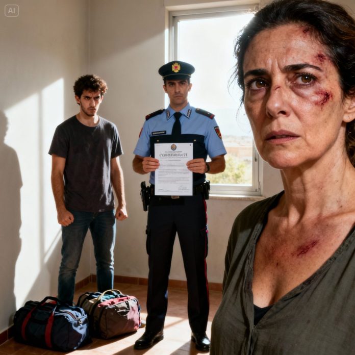 Mi hijo me golpeó hasta que no pude soportarlo más, y luego dijo: «Con unos cuantos golpes basta para que obedezcas». A la mañana siguiente, vio la mesa puesta y sonrió, pensando que me había vencido. No sabía que la comida no era para él. Quería control; yo lo que quería era libertad. Cuando sonó el timbre, su sonrisa se desvaneció. Allí no había un invitado, sino un policía con una orden de alejamiento. «Tienes una hora para irte», dijo el agente. Mi hijo me miró con odio ardiente. «Esto no ha terminado», susurró.