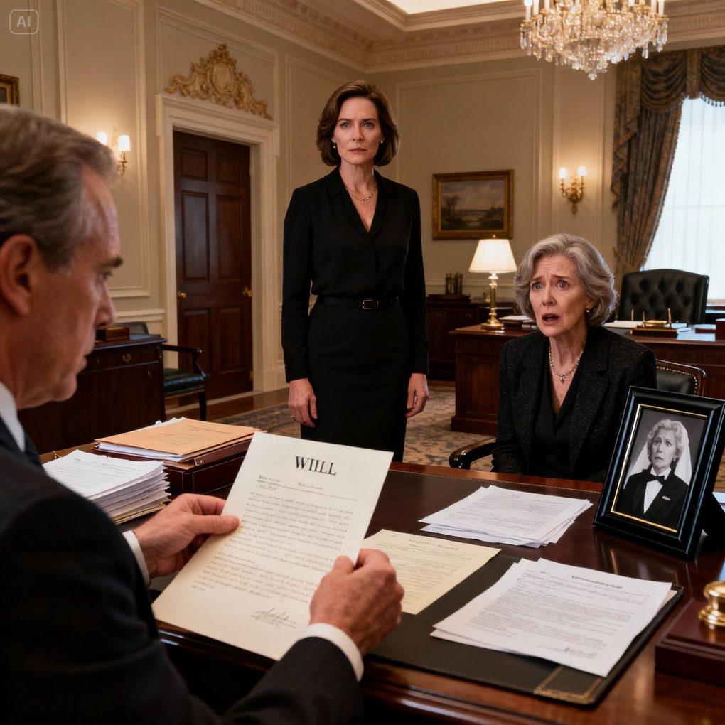 The lawyer adjusted his glasses and began reading routine bequests—charities, staff bonuses, minor gifts.