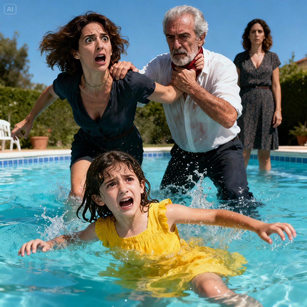 Mi hermana empujó a mi hija a la piscina, todavía con el vestido puesto, incapaz de nadar. Me abalancé, pero mi padre me agarró del cuello y me obligó a bajar. «Si no aguanta el agua, no merece vivir». En ese momento, sentí que se me partía el corazón. Después de sacar a mi hija exhausta, ahogándose en agua, no grité. No lloré. Simplemente los miré una última vez: larga, fría y en silencio. Luego salí de esa casa para siempre. No tenían ni idea de que les quitaría todo lo que alguna vez valoraron… y a la mañana siguiente, por fin empezaron a entender.
