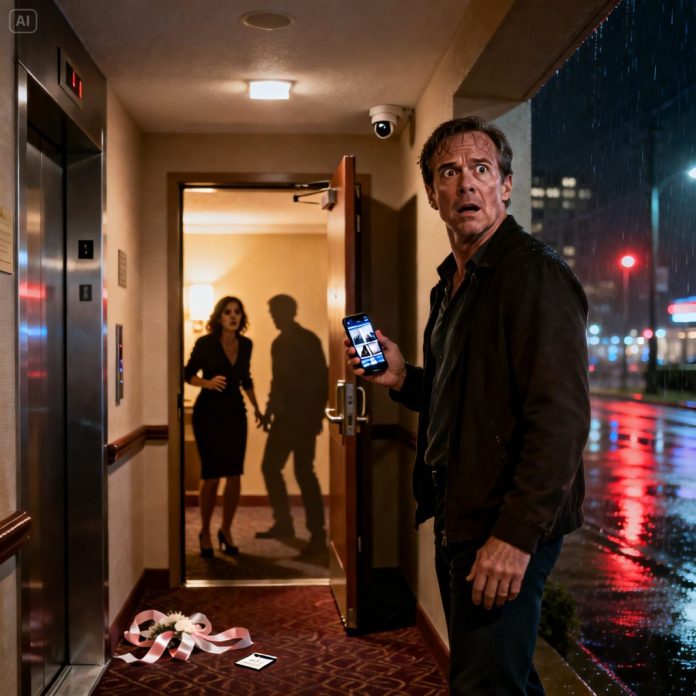 I thought my daughter’s wedding was finally over—until I checked the security footage and saw my “missing” wife slipping out the back… with a man I’d never met. When I confronted her, she snapped, “Don’t follow me, you’ll ruin everything!” But I trailed them anyway—straight into a hotel room where I heard her say, “He can’t know the baby isn’t his.” I froze. Then the door opened… and someone inside whispered my name.