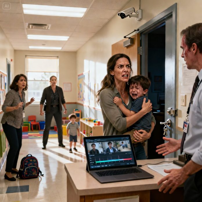 I dropped my son off like I always did—until his teacher pulled me aside and whispered, “Don’t leave yet.” My stomach sank when I heard my baby screaming from a locked room. I slammed the door open and froze… my son was shaking, and the caregiver snapped, “He’s dramatic, mind your business!” I grabbed him, demanded the camera footage, and the director went pale: “You… weren’t supposed to see that.” What I found next made me vow one thing—someone would pay.