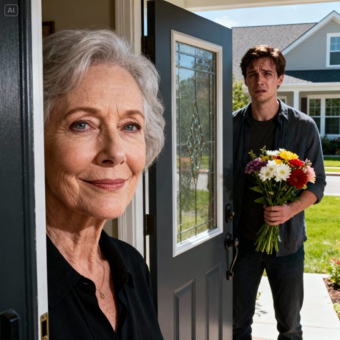 Andrew stood there, holding flowers. His voice trembled. “Mom… I made a mistake.”