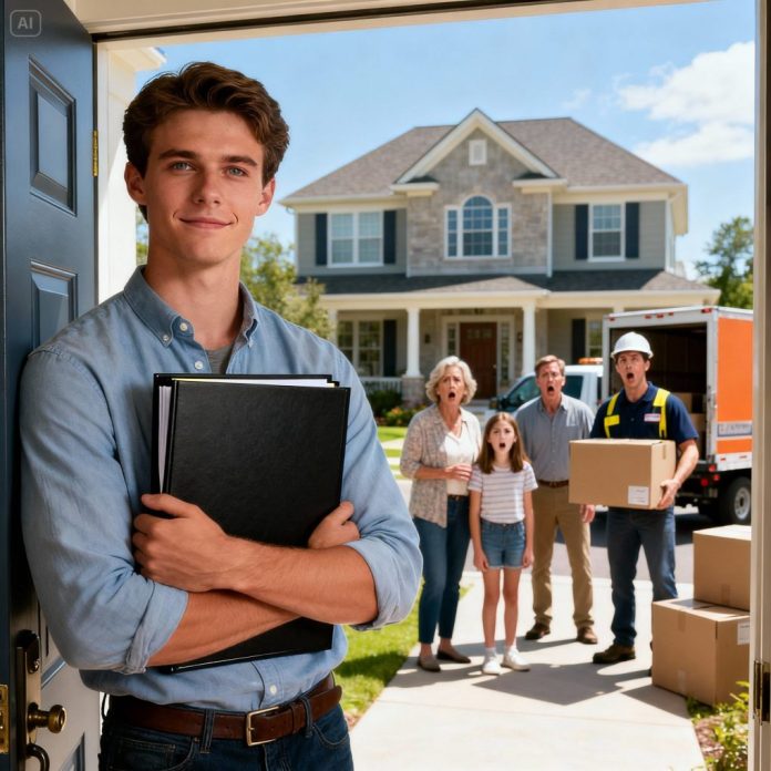 After graduation, my parents showed up smirking, “This house is ours—you’re gone by Friday.” I just smiled and asked, “You really think I’d allow that?” Two days later, they returned with movers, confident and loud. When the door opened and they saw who stood there—folder in hand—their faces drained of color. That was the moment they realized this wasn’t my house they were taking… it was their mistake catching up.
