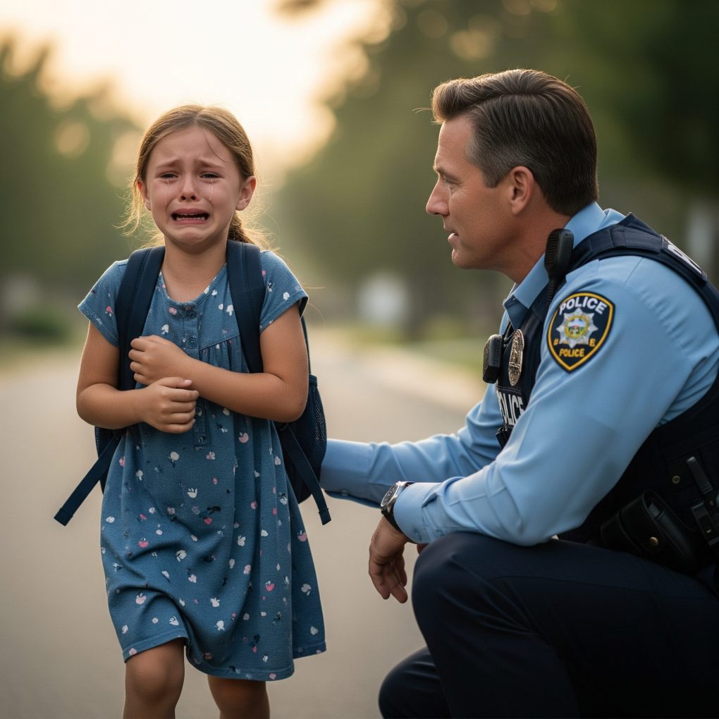 Sophie, a 7-year-old girl, ran down the quiet suburban street, her small body trembling with every step. Tears streamed down her face as she clutched her pink backpack tightly against her chest. She barely noticed the passing cars or the early morning sun. All she could focus on was getting to the one place that could protect her: the police station.