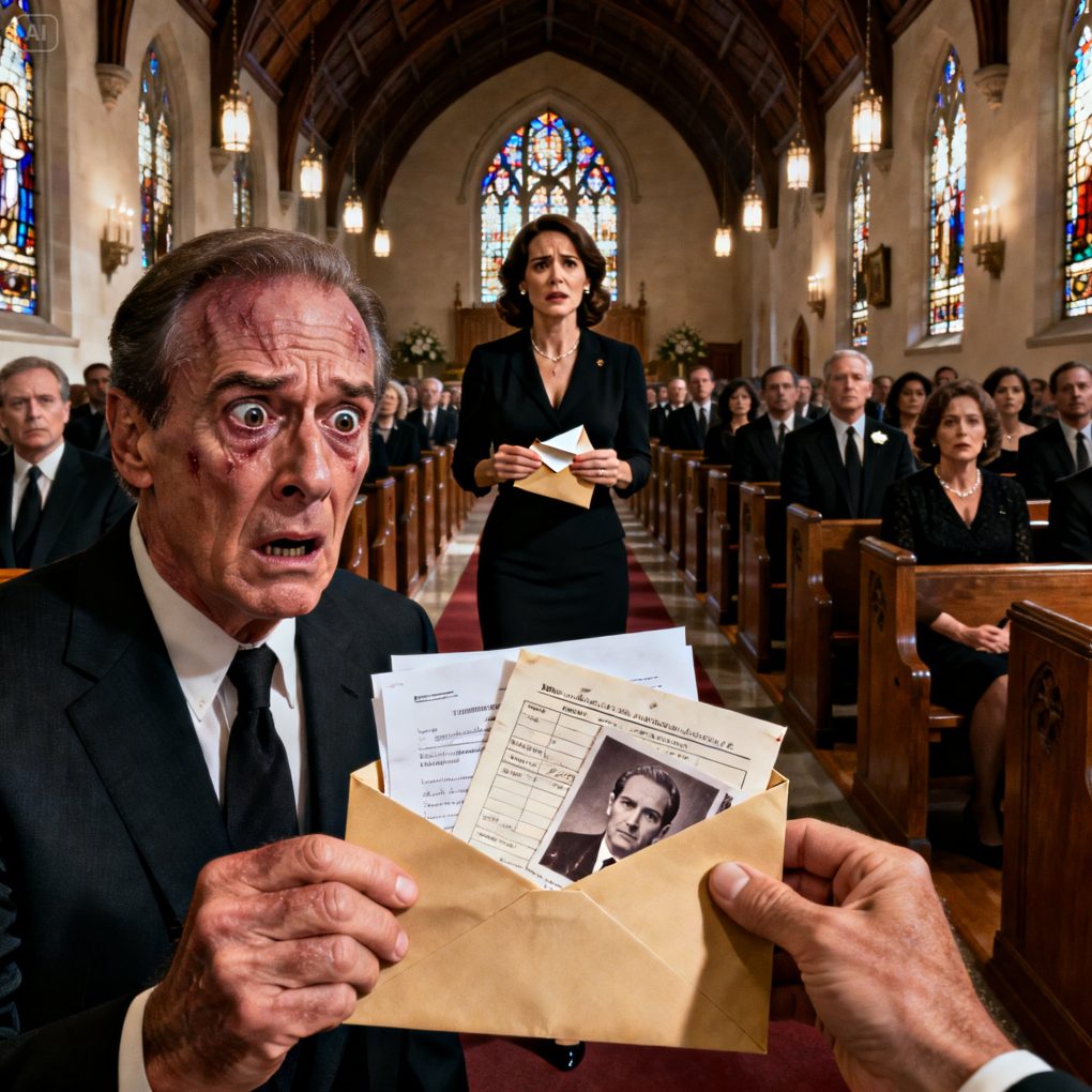 My father, Thomas Whitmore, sat in the front row of the chapel, his posture stiff, his jaw tight. He hadn’t cried once since Eleanor’s death. When he saw the envelope in my hands, his face went pale.