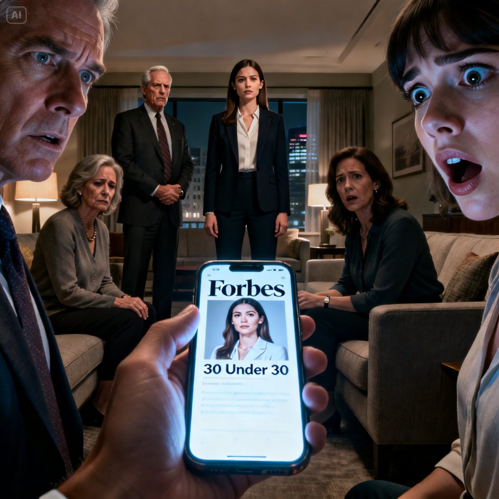 “We’re here to discuss your company, which is on the brink of bankruptcy,” my father announced in front of everyone. My mother nodded sadly. Just then, my sister gasped, staring at her phone in disbelief. “Why is your face showing up on Forbes’ ‘30 Under 30’ list?” The room fell into complete silence. Every eye turned toward me, and in that moment, everything they thought they knew began to collapse.