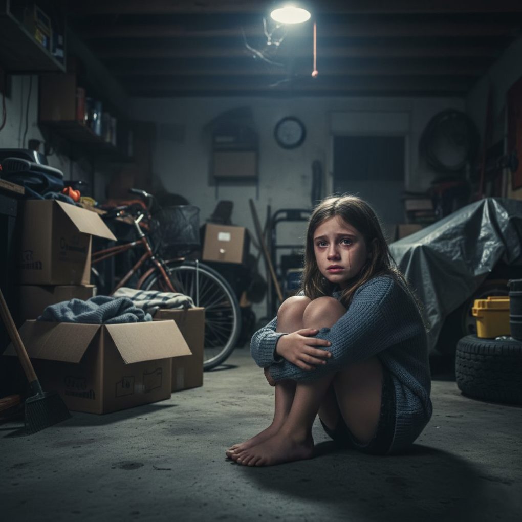 As I stepped into the living room, I heard soft sobbing coming from behind the kitchen door. Confused, I followed the sound and found my daughter huddled in a corner of the cold, unheated garage, wrapped in a thin, worn-out sweater. Her eyes were swollen from crying, and her teeth chattered violently. In front of her was a cold, concrete floor—no blanket, no pillow, nothing to shield her from the biting cold.