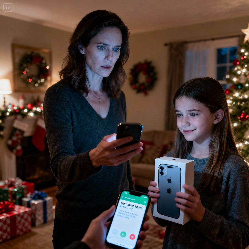 For Christmas, my parents gifted my eleven-year-old a brand-new iPhone. She was thrilled—smiling, laughing, setting it up right away. Then her expression changed. She turned the screen toward me and asked softly, “Mama… what is this?” One glance made my blood run cold. I didn’t raise my voice. I didn’t confront anyone. I documented everything, disabled the device, and made a few careful calls. Two hours later, questions were being asked, doors were closing, and my parents’ comfortable little world began to unravel.