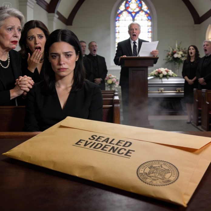 My parents cornered me at Dad’s funeral, Mom hissing, “You’ll do anything to get the inheritance, won’t you?” My sister smirked, “Don’t make Mom uncomfortable.” I swallowed the grief and said, “Fine.” But when the lawyer began reading, his voice shook: “To my daughter… the one they tried to erase…” Mom’s face drained white. My sister grabbed my arm, whispering, “What did you do?” I just stared at the sealed envelope—because it wasn’t money inside… it was proof.