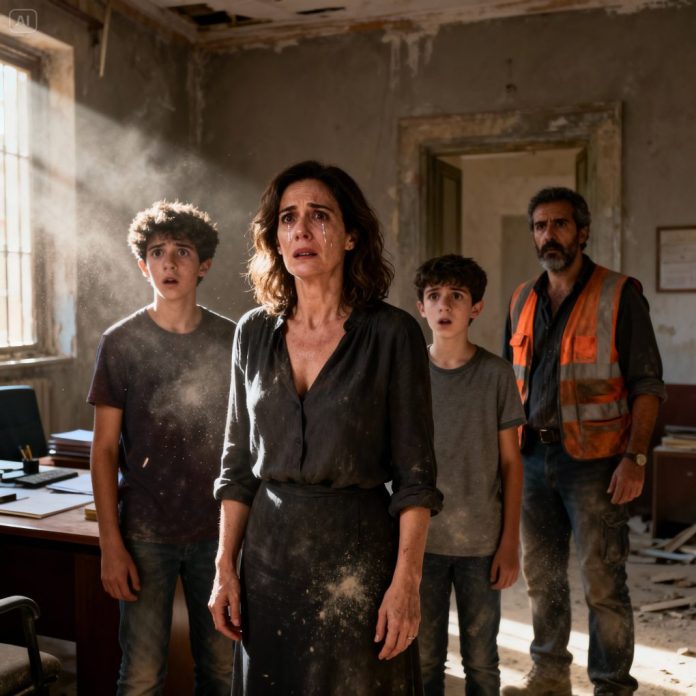 Un año después del fallecimiento de mi esposo, Javier Morales, decidí renovar su antigua oficina en Sevilla. No era solo una cuestión de espacio; necesitaba cerrar una etapa. Javier había sido arquitecto, metódico, reservado, y aquel despacho llevaba meses cerrado, intacto, como si aún fuera a regresar. Contraté a una empresa local y les pedí discreción. Yo iba cada mañana a la iglesia con mis hijos, Lucas y Mateo, buscando una rutina que nos sostuviera.