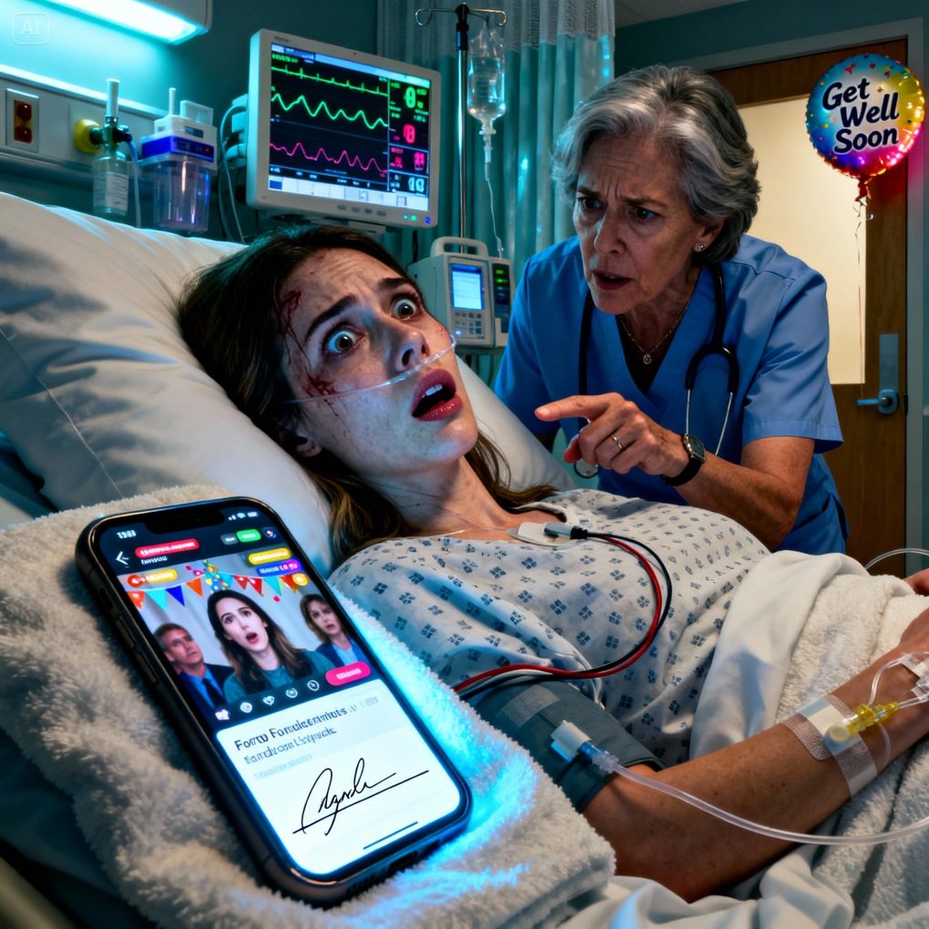 I woke up groggy after emergency surgery and found my phone exploding—my husband’s family had already thrown a huge “recovery party” in my name. “Smile, everyone! She’ll be fine,” my mother-in-law laughed on a livestream… while I was still hooked to monitors. Then a nurse leaned in and whispered, “Ma’am… who approved this fundraiser?” My blood ran cold when I saw my signature on the donation page—because I never signed anything. And the real bill hadn’t even arrived yet…