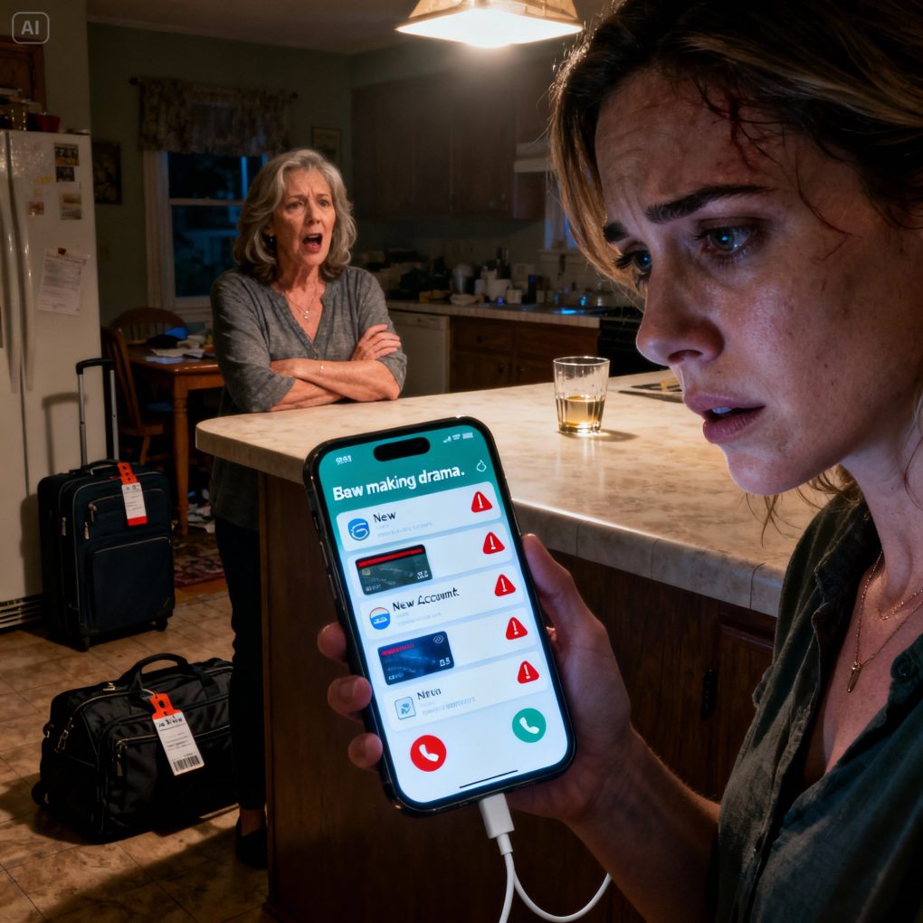 I didn’t need him to say “your mother.” I didn’t need him to say “your brother.” Because suddenly the O’Hare drop-off made sense. It wasn’t just cruelty. It was timing. They needed me distracted, stranded, low battery—unable to receive verification texts or bank alerts while they pushed the applications through.