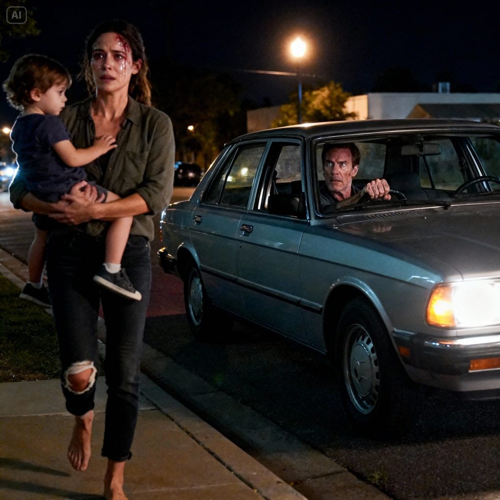 He pulled over so fast the tires scraped the curb. For a moment, he just stared at me through the windshield, like his mind couldn’t reconcile what he was seeing with what he believed to be true. His daughter. On foot. Bruised. Carrying a child alone.