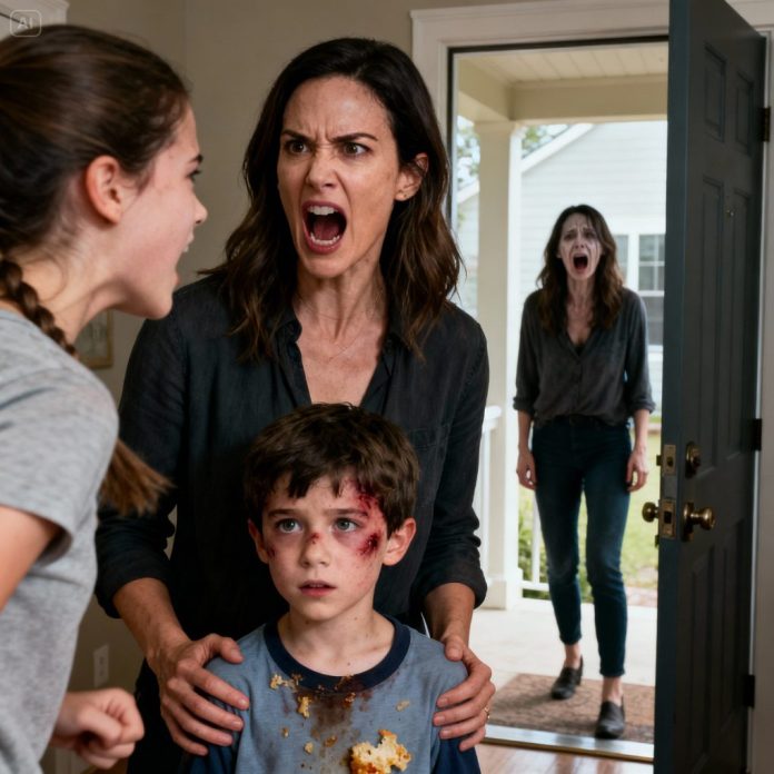 At the family party, I saw my son — his face bruised, his clothes covered in food. My sister laughed coldly, “Relax. It was just a joke.” I slapped her hard and walked away without looking back. Behind me, my mother shrieked, “You bastard!” The next morning, she stood at my door, trembling. “Please… save your sister.” And in that moment, I knew — the real joke had only just begun.