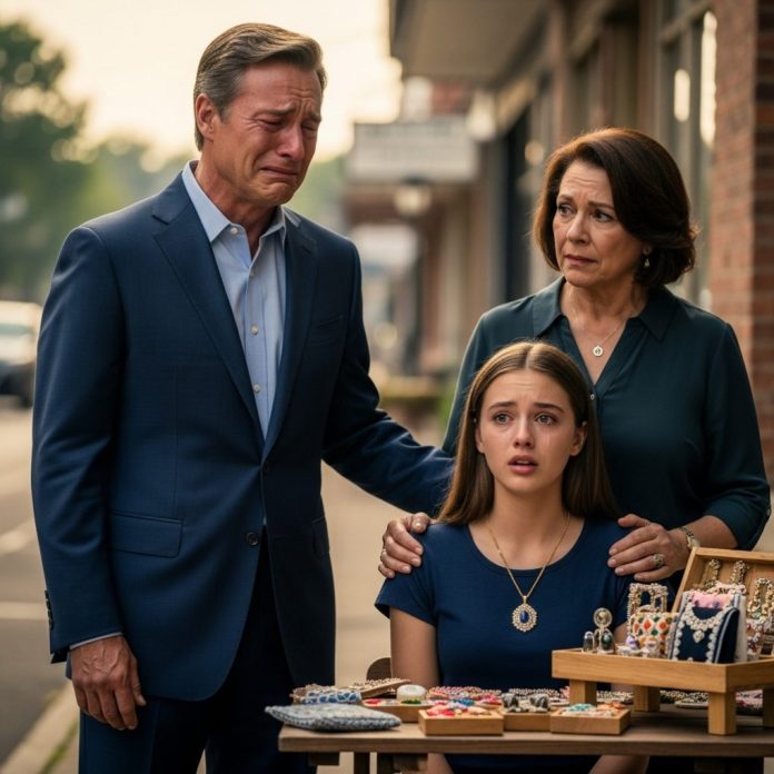 A young girl, no older than sixteen, sat on a folding chair behind a small table of trinkets. She looked tired but polite, her hands fidgeting nervously as she waited for customers. What caught Jonathan’s eye wasn’t her presence but the necklace hanging on her neck.