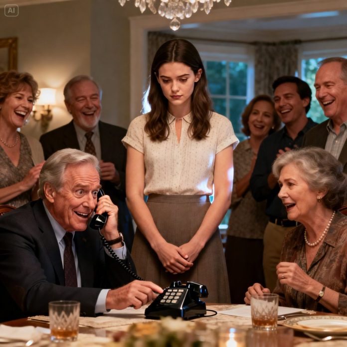 He stood up slowly, pressing the phone closer to his ear. The confidence that had filled the room minutes earlier drained from his face, replaced by something raw and unfamiliar. No one laughed now. Everyone was watching.