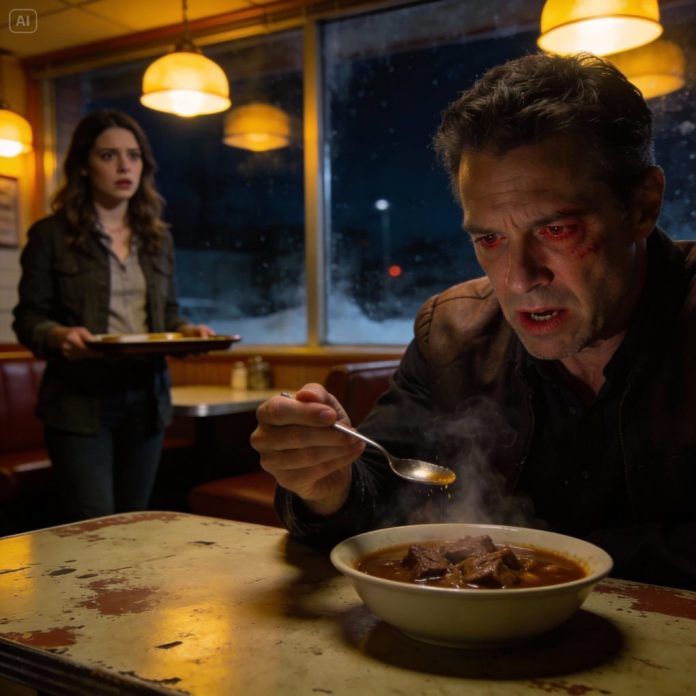 He was a notorious food critic—ruthless, feared—stranded in my small town. The only place still open was my family’s run-down diner. My hands trembled as I served him my father’s beef stew. He sneered, “That’s it?” Then he took a bite. The spoon slipped from his hand. His eyes turned red. “This dish,” he whispered, “saved me from forgetting who I am.” And that was only the beginning.