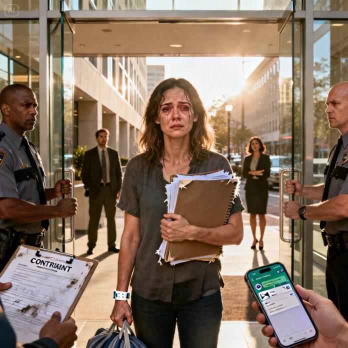 “My husband snapped, ‘Your sick mom is a burden—choose.’ My hands were shaking as I carried Mom out of our house, her breath thin, her eyes barely open. I slept beside her hospital bed that night, whispering, ‘I’m here… I won’t leave.’ The next morning, I walked into work—and security blocked the door. ‘You’re terminated,’ they said. Then my phone buzzed with one message from my husband: ‘Check your email.’ I opened it… and realized he’d been planning this for months. But he forgot one thing: I kept the receipts.”