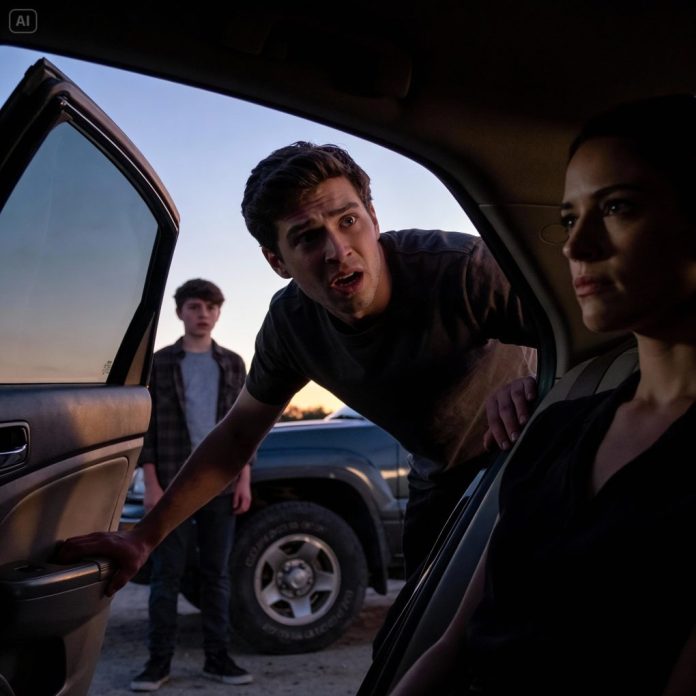 I stopped on the shoulder of a dark county road when I saw the teenager standing beside a car with a blown tire. He looked no older than sixteen, pale and shaking, phone pressed to his ear like it wasn’t helping. The nearest town was miles away, and it was already past midnight.
