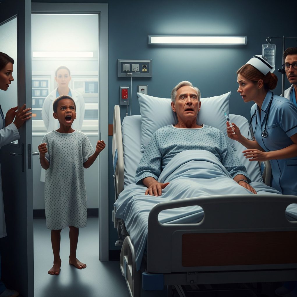 The woman froze, syringe still in hand. Richard, confused and weak, tried to focus on the boy’s words.
