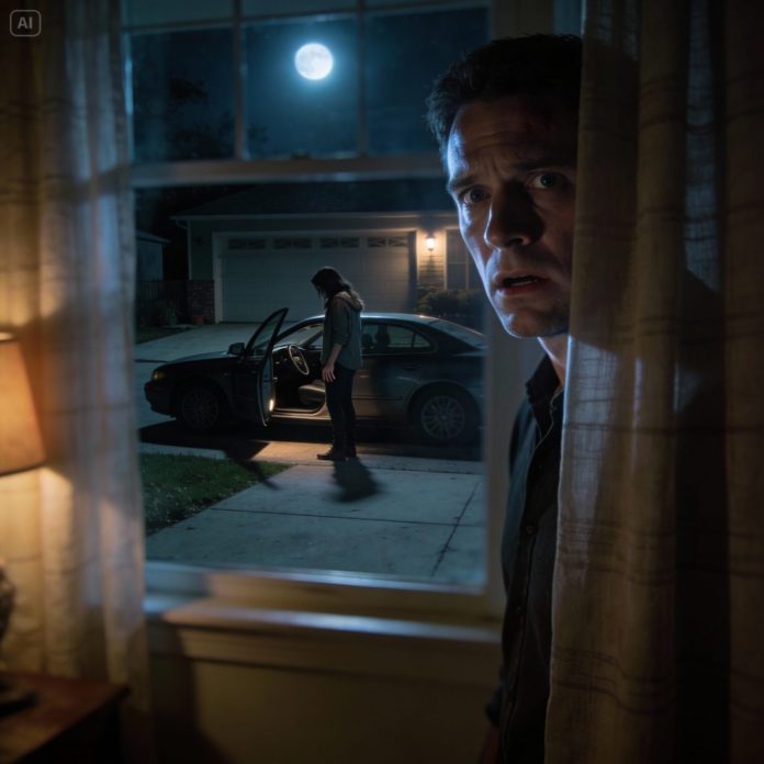 I turned off the lights in the living room and stood behind the curtain, my heart pounding harder than it should have, watching the driveway in silence.