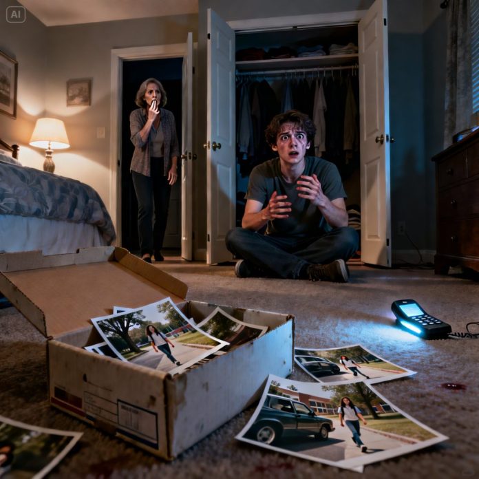 I used to think I was just a “paranoid kid”… until I found the old shoebox in my parents’ closet. Inside were photos of me walking to school—taken from behind trees, from a car, from places no one should’ve been. My hands went cold. I confronted my mom and she whispered, “Please… don’t wake your father.” Then my uncle called, laughing softly: “You finally opened it.” And that’s when I realized the cover-up wasn’t over… it was still happening.
