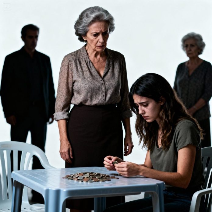 Me llamo Isabel Cortés, tengo sesenta y tres años y siempre he creído que, como madre, uno nunca deja de proteger a sus hijos. Aquella tarde había salido a comprar un regalo cuando reconocí a mi hija Laura sentada sola, con la cabeza gacha, separando monedas sobre la mesa de plástico. Vestía ropa sencilla, muy distinta a la que solía usar cuando se casó.