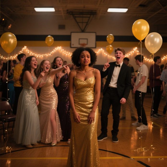 Danielle, a seventeen-year-old Black girl with a radiant smile and a love for dance, had been excited for weeks. She wore a flowing golden dress that her aunt had sewn, the fabric catching the light every time she moved. Yet when she walked into the gym with her small group of friends, the whispers started.