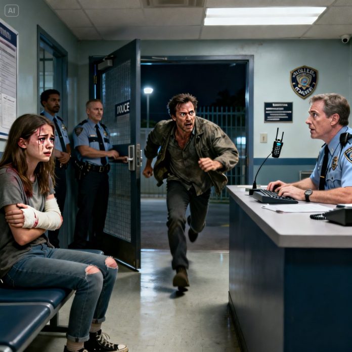 My phone buzzed in the middle of the night. My daughter sobbed, “Dad… I’m at the police station. My stepfather hit me, but now he’s saying I attacked him—and they believe him!” I rushed there, barely breathing. The moment I walked in, the officer on duty turned pale and stammered, “I’m… I’m sorry… I didn’t know you were…” My stomach dropped. “Didn’t know what?” He looked at my daughter, then at me—and what he said next almost made me snap.