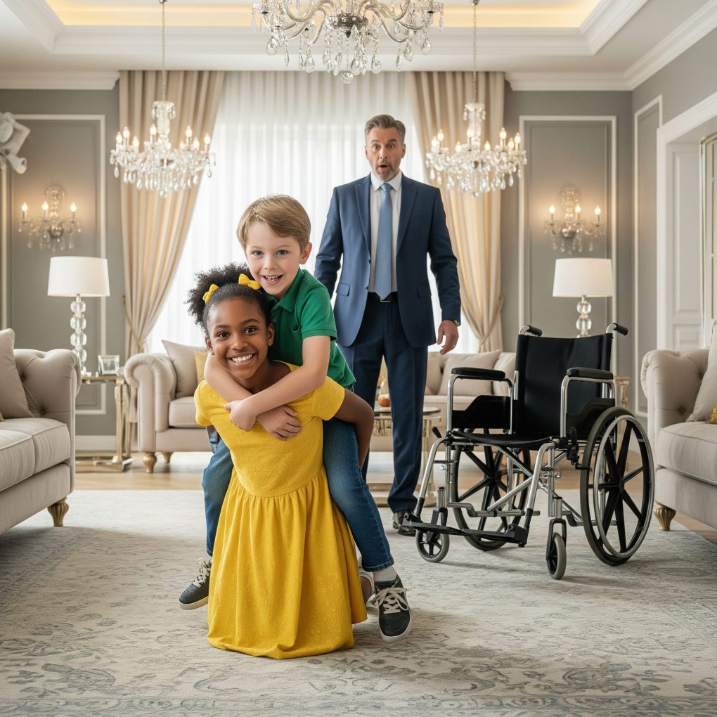 The Billionaire Father Returned Home Early and Froze When He Saw His Disabled Son Laughing With the Maid’s Daughter – A Moment That Changed Everything…