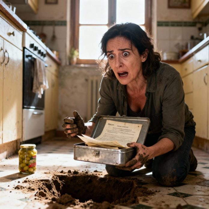 Una Semana Después Del Funeral, Sola En La Cocina, No Pude Quitarme Esas Palabras De La Cabeza. Moví El Mueble, Levanté El Suelo Suelto Y Empecé A Cavar. Debajo Encontré Una Caja Metálica Oxidada. Dentro Había Documentos, Una Llave Y Una Carta Con Mi Nombre.