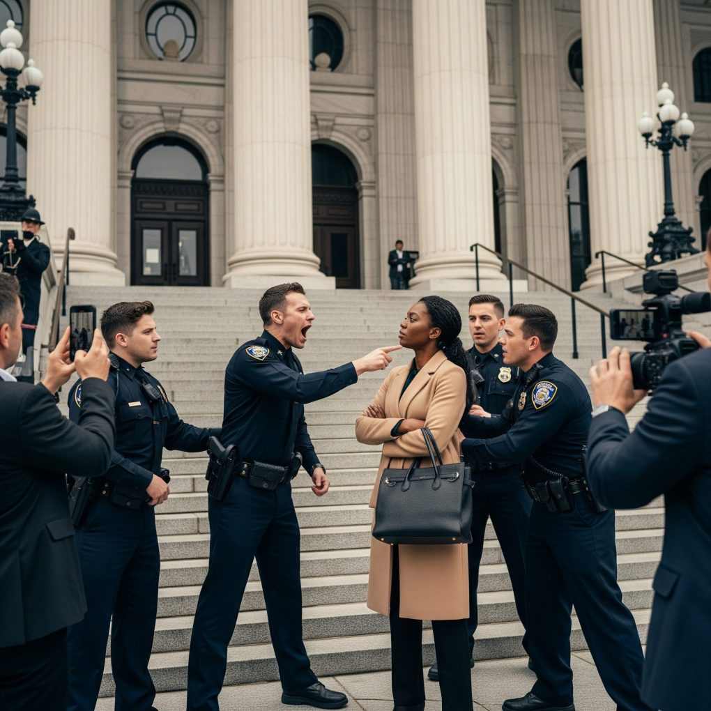 “I have been silenced too many times,” she continued. “On the street, at work, in front of police. Today, I will not be silent.” Her cheek still bore the redness of the officer’s handprint, a stark and undeniable testament to what had just transpired. Cameras clicked furiously. Journalists scribbled notes, sensing history in the making.