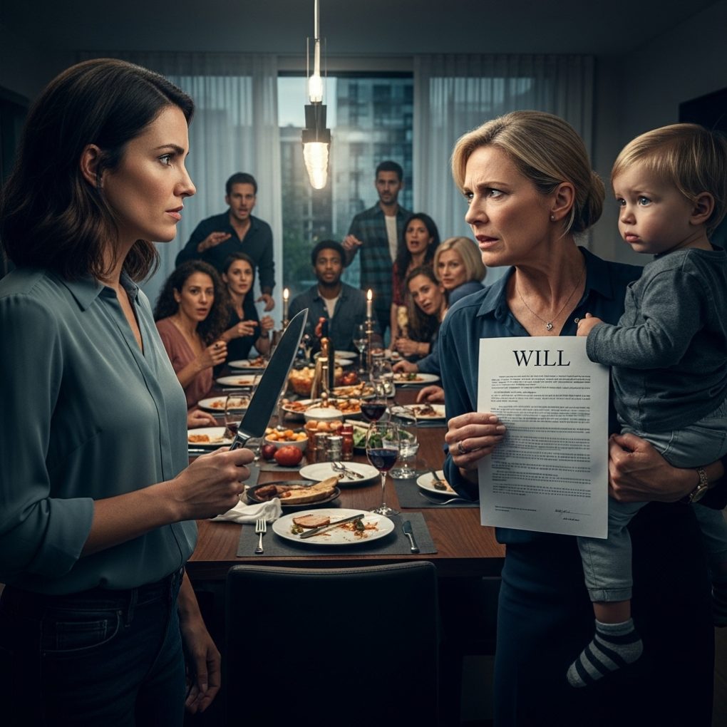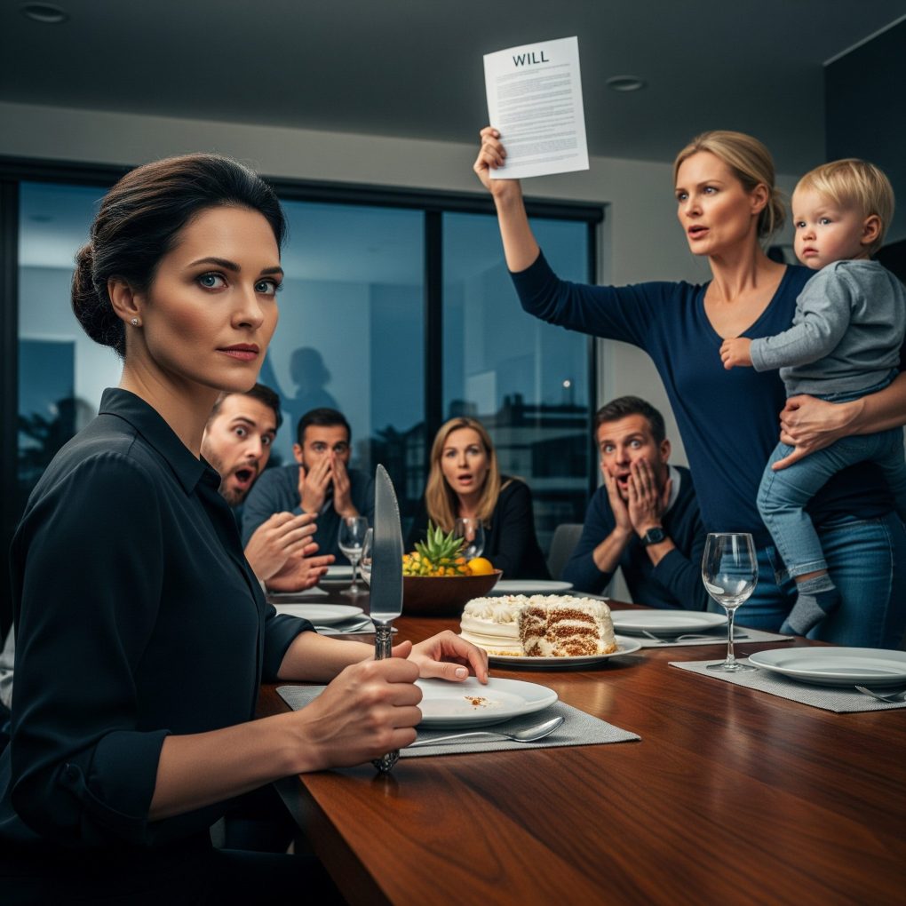 The air snapped into silence. Plates stopped clinking, laughter drained, and even the child stilled as if he recognized the weight of her words. My husband had been buried less than two weeks earlier, and now the betrayal arrived fully dressed, bold and public. She didn’t stop there. Lifting a folder in her free hand, she declared, “And as his heir, I’ll take half of your eight-hundred-thousand-dollar house. His will says it clearly.”