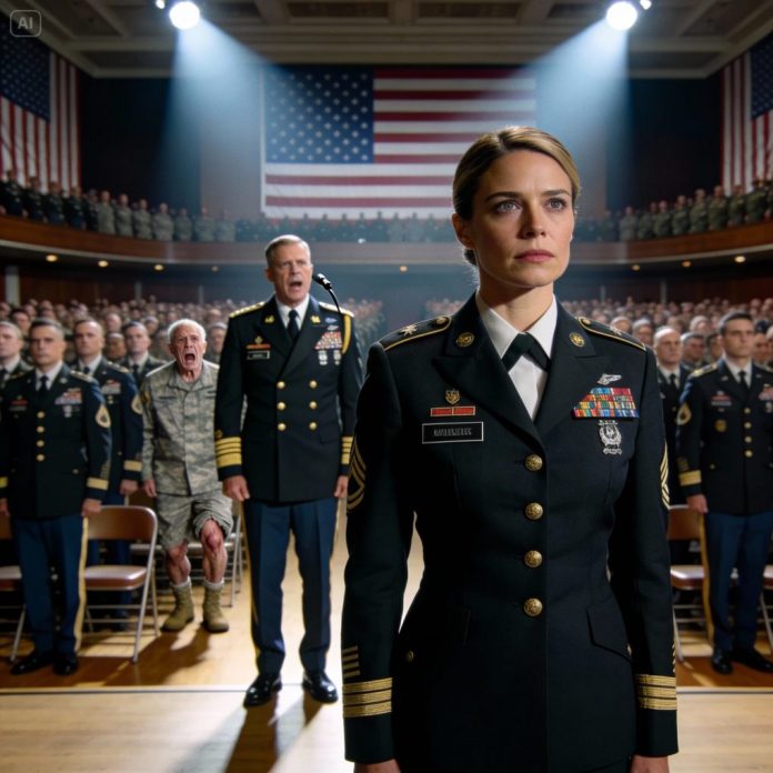 A four-star general entered from the side doors, the sudden movement drawing every eye. His presence was quiet but commanding. He stepped onto the stage without notes, scanning the room before stopping—on me.