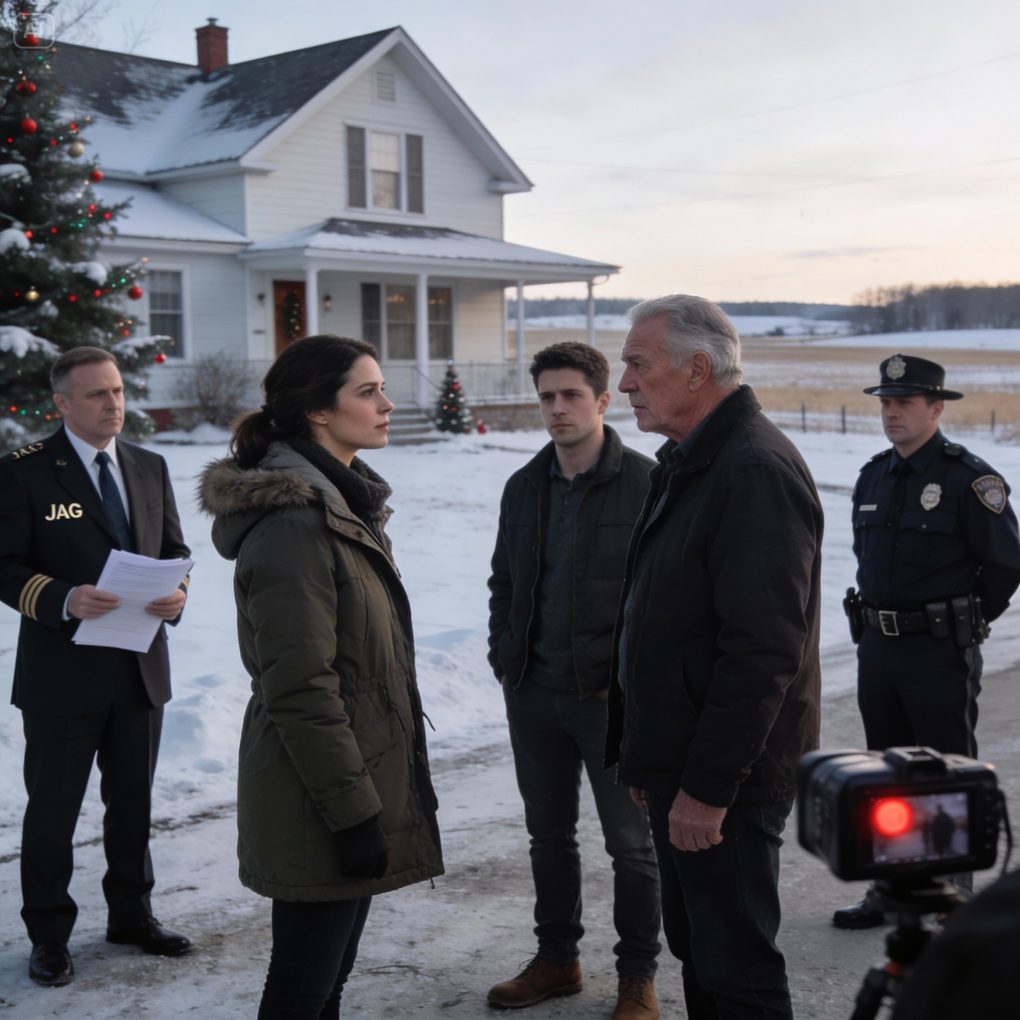 He didn’t invite me home for Christmas, so I bought an entire farm for myself. When they showed up with a realtor, sneering, “Sell the land to your younger brother,” I stayed silent. Until a JAG lawyer stepped forward, followed by the county sheriff, and the camera’s red light turned on. I looked straight at my father and said quietly, “This Christmas… I’m not alone anymore.”