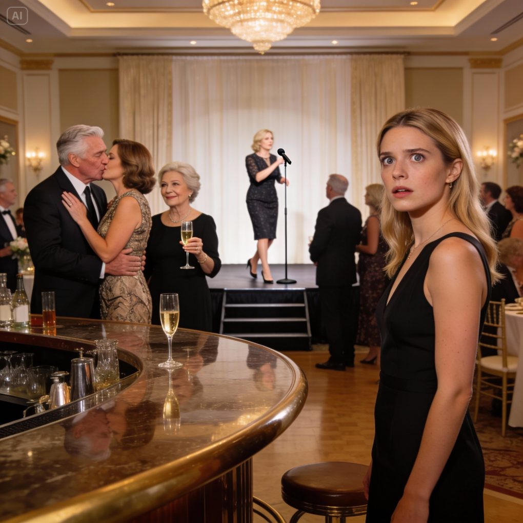 During the anniversary celebration, I stood behind the bar and went numb when I saw my father kissing my mother’s closest friend. My heart stopped. I looked at my mother—she smiled calmly, lifted her glass, and whispered, “Quiet… the best part is coming.” Before I could react, she stepped onto the stage and picked up the microphone. The room fell completely silent. That was when I realized—tonight, every secret was about to be exposed.