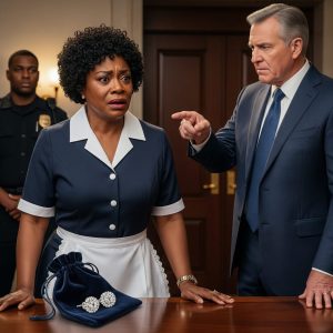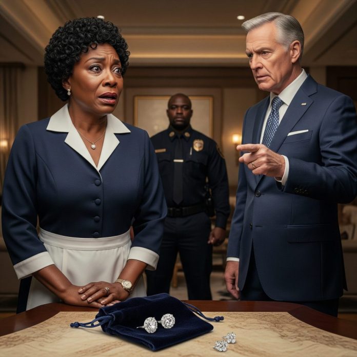 Before Monica could defend herself further, the head of household security, a man named Greg Mitchell, stepped into the room holding a small velvet pouch. He opened it on the marble coffee table, and Monica gasped. Inside were the exact diamond earrings Richard described.