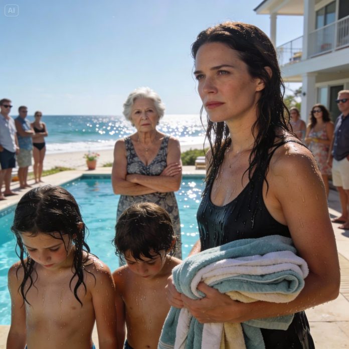 “GET OUT OF THE POOL!” my mother screamed at my children. “THIS PARTY IS FOR DECENT FAMILY ONLY — NOT FAILED DIVORCEES.” Fifty eyes watched as we walked away, dripping wet and humiliated. I silently collected the towels. The next morning, my phone rang. The realtor’s voice trembled. “Ma’am… the owner of the beach house has decided to end the lease.” And in that instant, my mother finally understood — a truth she had realized far too late.