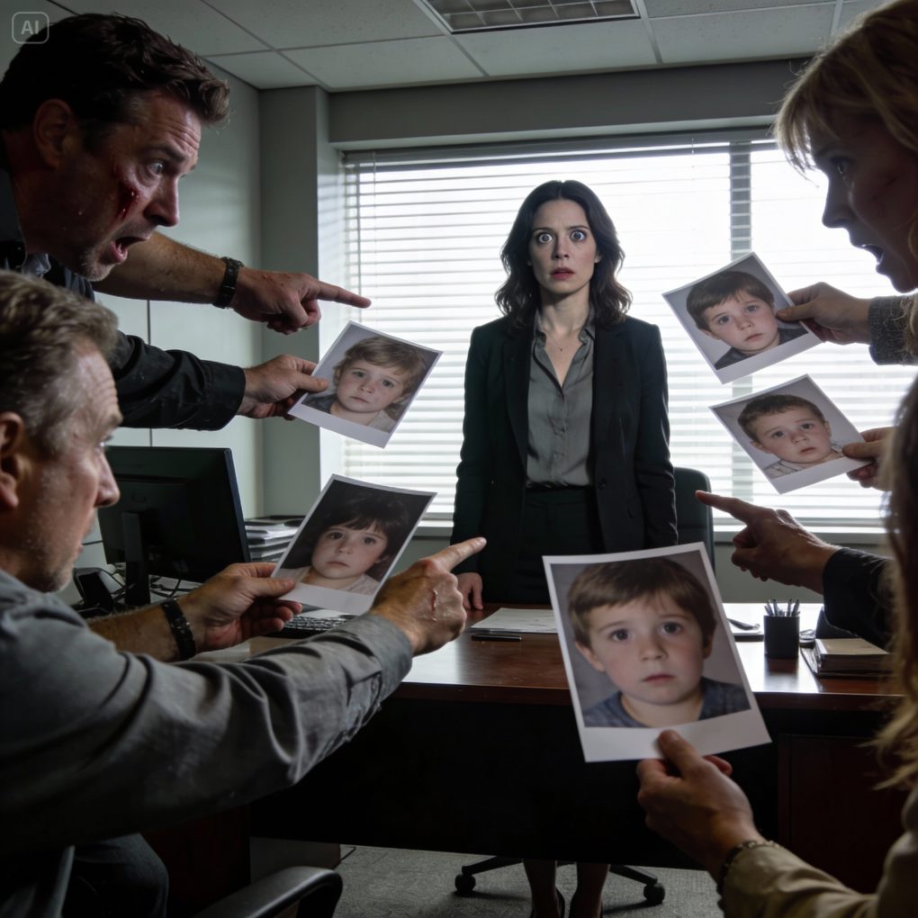 My ex-husband’s family burst into my office, screaming, “Where are our grandchildren? Stop hiding them!” I stood frozen as they thrust photos at me — children they claimed were mine. But in five years of marriage, I had never had a child. My heart pounded wildly… because at that exact moment, a terrifying secret was beginning to reveal itself.