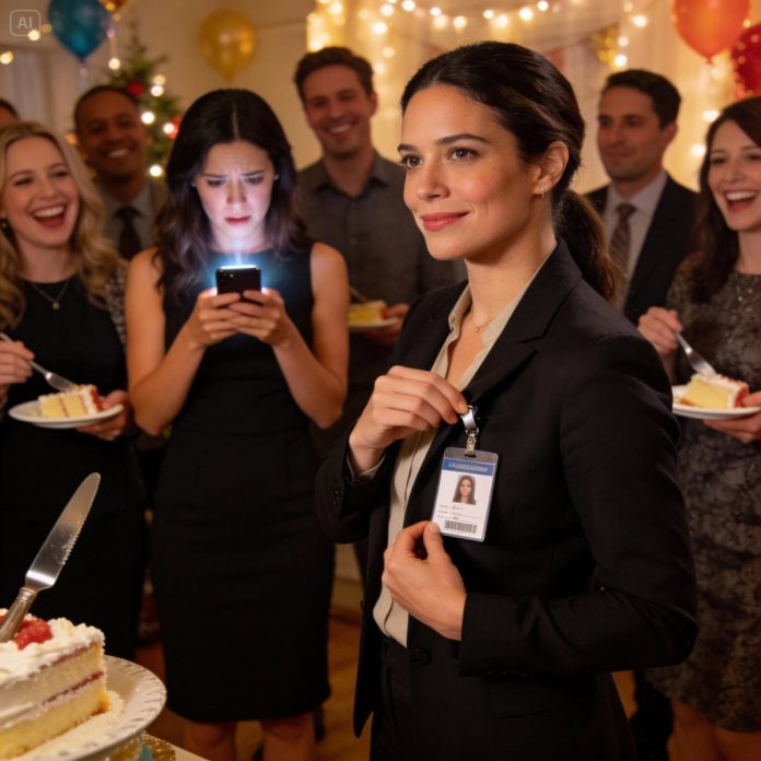 I reached into my jacket pocket and quietly removed my executive ID badge. No announcement. No theatrics. I slipped it into my purse just as the host announced it was time to cut the cake.