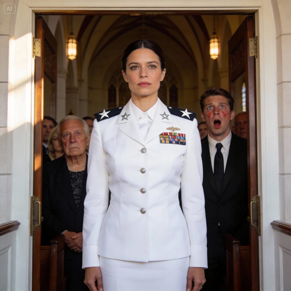 I stepped inside in full white Navy dress uniform, medals aligned perfectly across my chest. Service ribbons reflected years of deployments, commands, and decisions made far from home. The two stars on my shoulders gleamed under the vaulted ceiling.