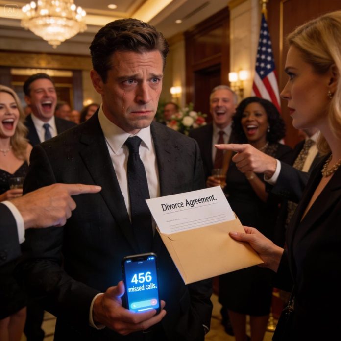 I showed up at the opening party of my wife’s law firm, only to see people laughing and pointing at me, saying, “The test husband is here.” Then my wife handed me an envelope and said, “The firm’s first case is divorcing you. Sign it and leave.” I walked away and quietly canceled every expense, every party, every trip, and withdrew the twenty-million-dollar investment from her company. Minutes later, my phone lit up with 456 missed calls… and someone showed up at my door.