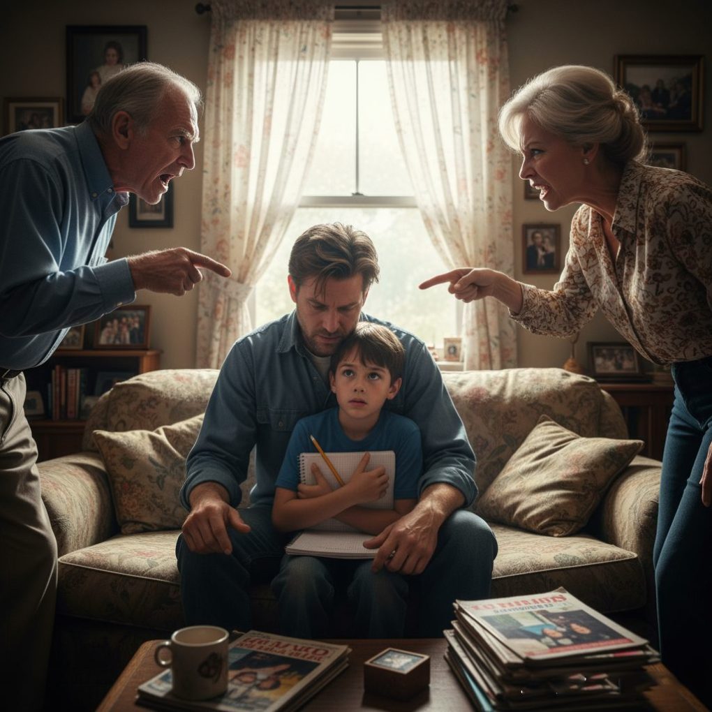 Lucas, meanwhile, grew quieter. He avoided the living room where his grandparents sat, choosing instead to retreat into his bedroom. One night, Daniel found him curled up with a flashlight, sketching superheroes in a notebook. “Are you okay, buddy?” Daniel asked softly.