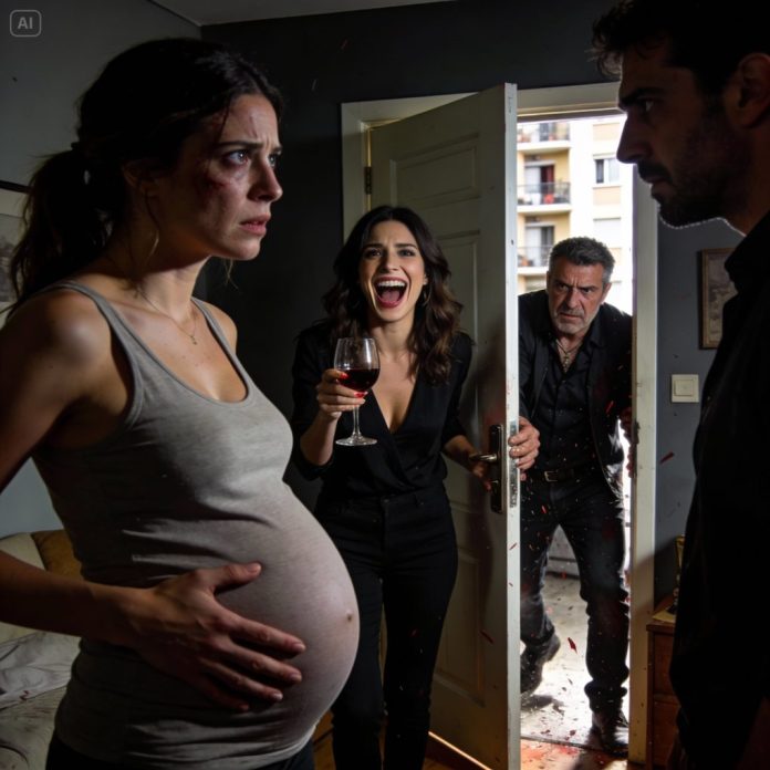 Caí al suelo mientras intentaba cubrir mi vientre. El aire no entraba y el miedo me nubló la vista. En la puerta del dormitorio apareció Lucía, su compañera de trabajo, la mujer que yo solo conocía por sospechas. Su rostro estaba desencajado, y con una voz aguda y desesperada gritó: “¡Acaba con ella! ¡Ese bebé ni siquiera es tuyo!”. Sentí que esas palabras dolían más que los golpes. No solo me estaban atacando físicamente, estaban destruyendo todo lo que yo creía real.